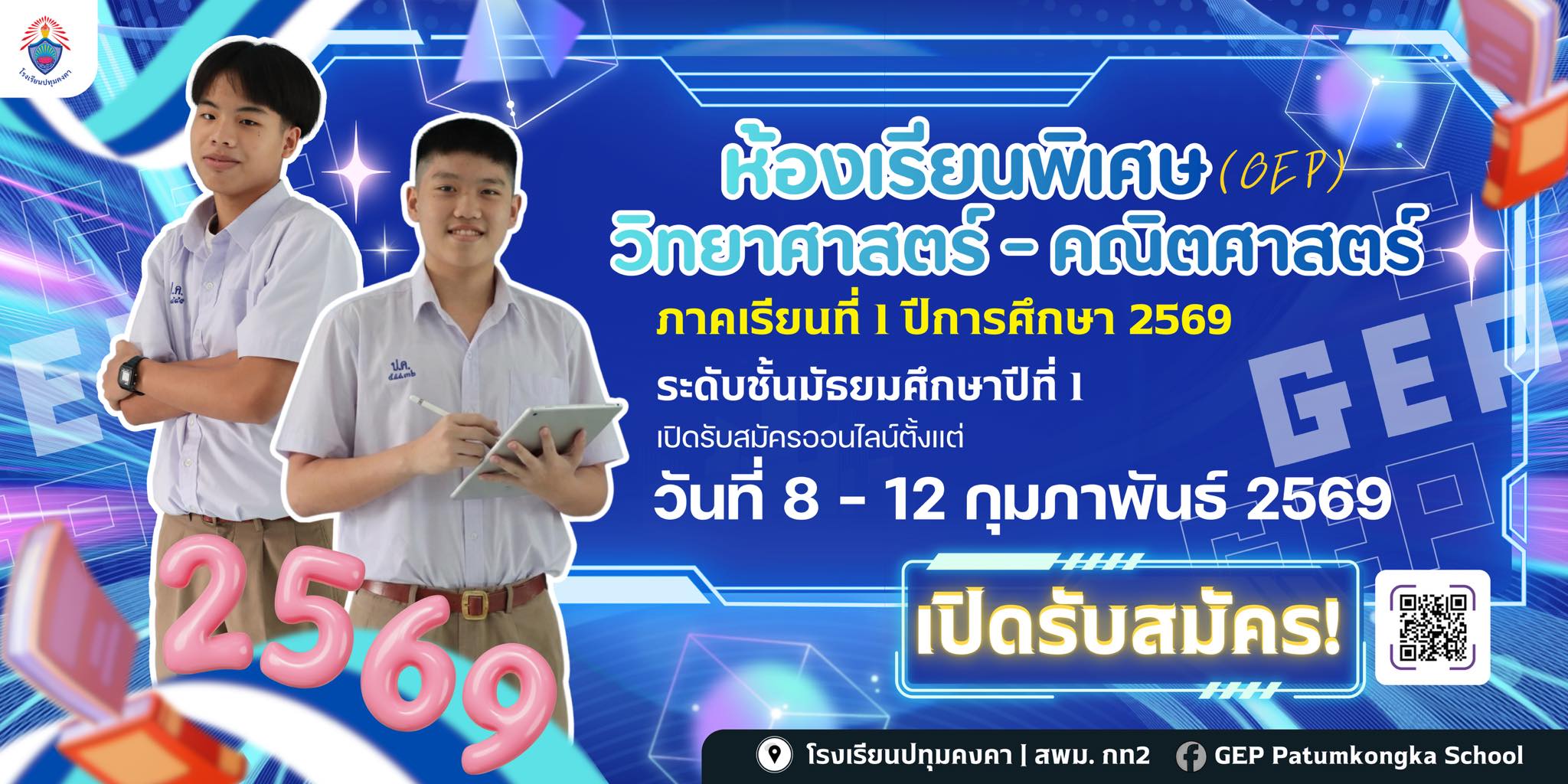 ห้องเรียนพิเศษวิทยาศาสตร์ – คณิตศาสตร์ (GEP) เปิดรับสมัครนักเรียน ประจำปีการศึกษา 2569